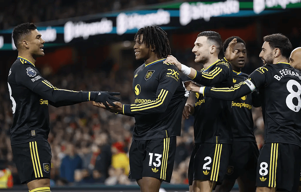 而以曼联的视角来看,这粒进球则展现出了卡里克在面对不同对手进行针对性布置的能力。对阵曼城时,红魔紧守后场篱笆,用铁桶阵掐断曼城两侧肋部与中锋哈兰德间的联系,进而寻求攻守转换中的快速反击。而对阵阿森纳,在枪手的传导能力逊于蓝月军团的情况下,卡里克又能安排球员做出高质量的高位压迫,通过切割阿森纳的中后场来逼迫对手失误,指挥能力可见一斑。